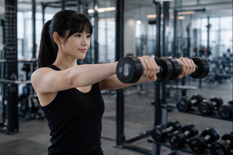 訓練前三角肌較常用到的動作就是前平舉,可以雙手一起進行、單手交替進行或單手全部的次數進行完再交替換手。