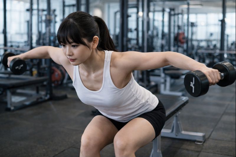 針對後三角肌的訓練,由於這是肩部肌群裡最小的一個肌肉,所以動作的正確性將反應在訓練效果上。可以採用坐姿的方式或站姿俯身的姿勢,但站姿的動作難度較高一些。