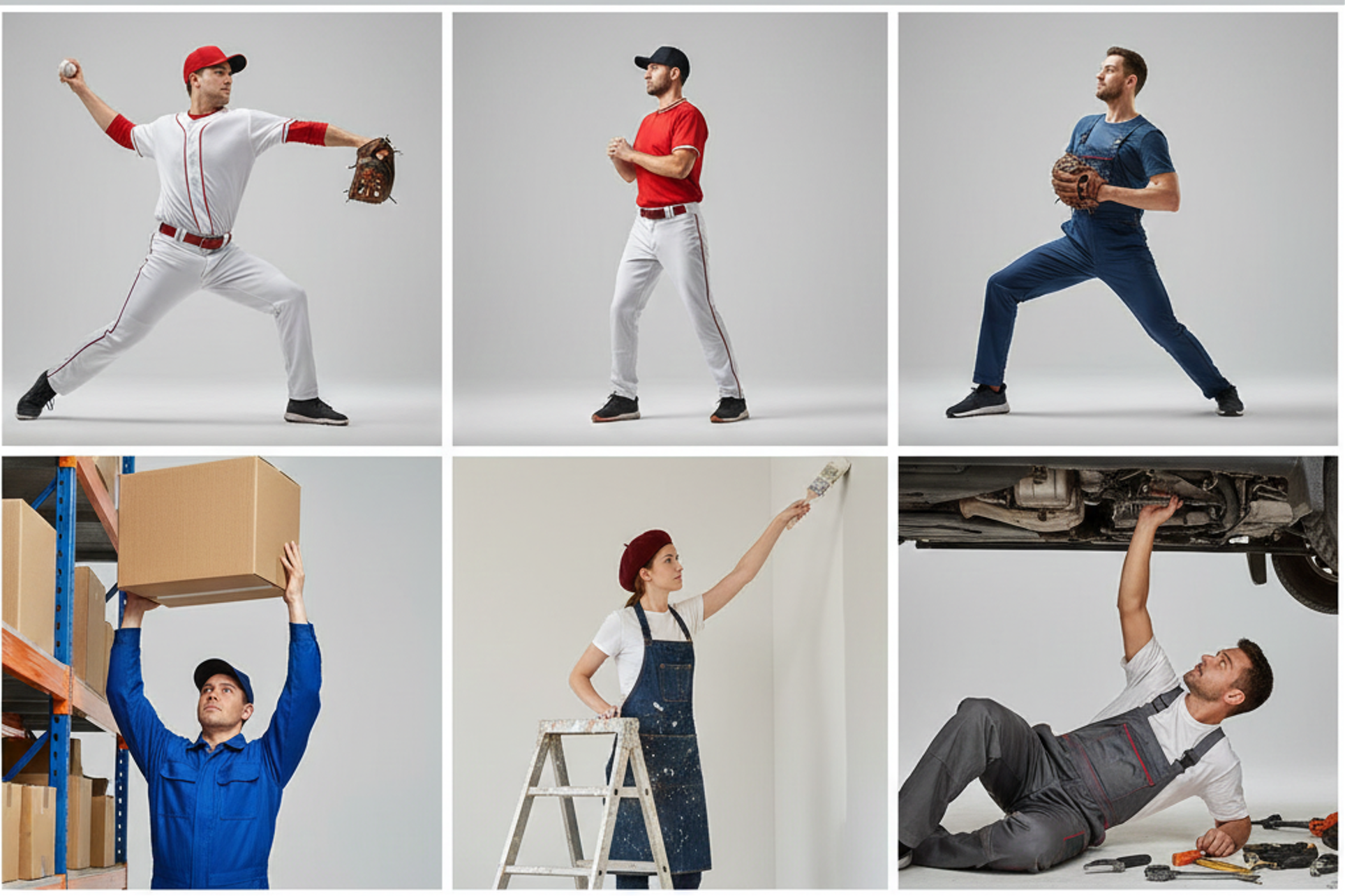 - 避免長時間重複性上舉、揮擊或投擲動作