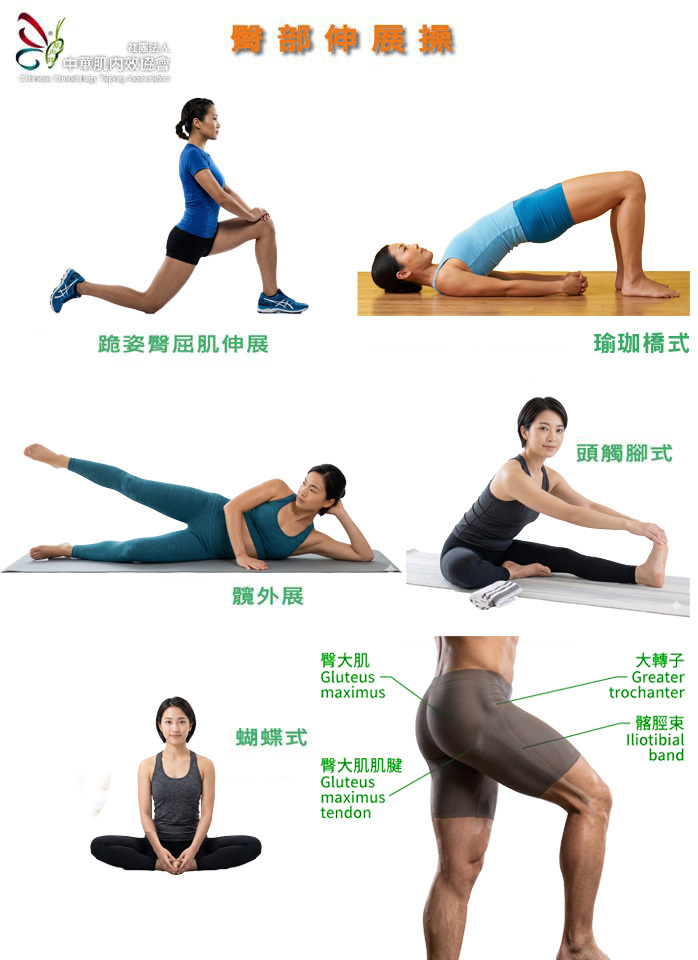 這個運動可以幫助伸展及強健的臀部肌肉,有助於增強柔韌性及運動幅度