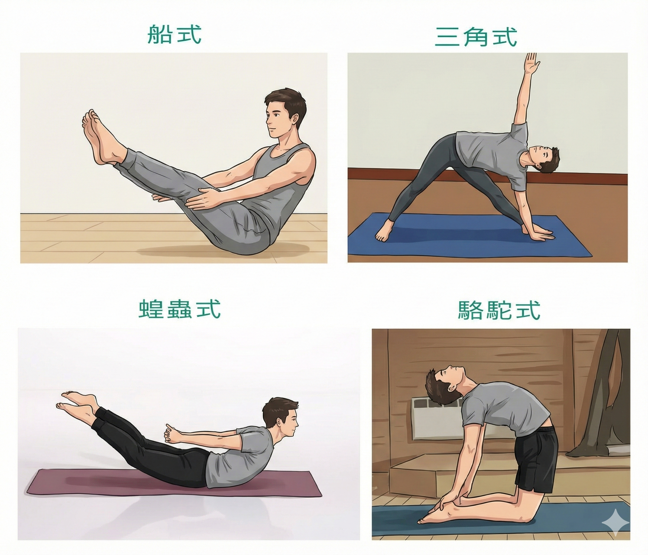 以下分享幾個簡單瑜珈動作,平常可以練習,來幫助增加伸展、核心肌群的力量與背部肌力,藉此改善脊椎側彎的問題:(貼心提醒:所有動作還是量力而為,避免造成身體傷害喔!)