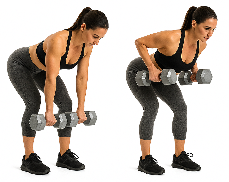 動作:將身體前傾,膝蓋微彎。上半身須保持挺直,不可駝背。將肩胛骨向後集中收縮,同時將手肘向後擺動。可拿取適當重量增加訓練強度,如啞鈴、彈力繩、水瓶。一組做15下,共執行三組,組間休息一分鐘。