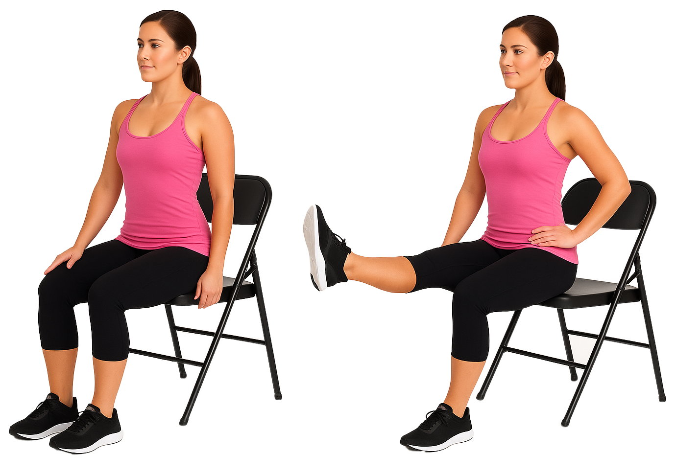 採取坐姿,將膝蓋從曲膝的位置逐漸將腿伸直,讓腿與地面平行,並維持姿勢3~5秒鐘。保持膝蓋有微微彎曲的彈性,切記不可刻意將膝蓋完全打直到有”鎖死”感覺。這個動作可以適當的增加一些重量,以提升訓練效果。