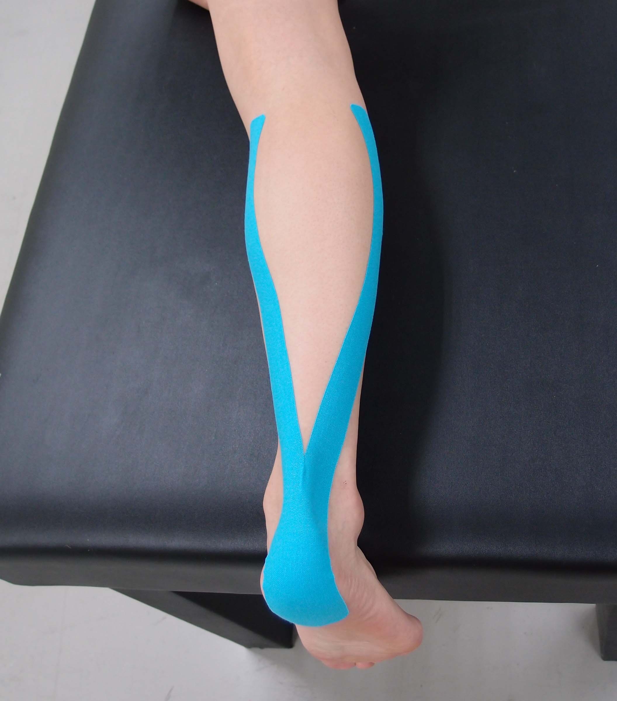 HYROX 的核心是「跑、動、跑、動」的循環,小腿極易因頻繁切換而抽筋。選手可沿著阿基里斯腱向上貼紮,能有效減震並降低肌肉震盪,預防長距離奔跑帶來的足底筋膜緊繃,維持穩定的推蹬力。