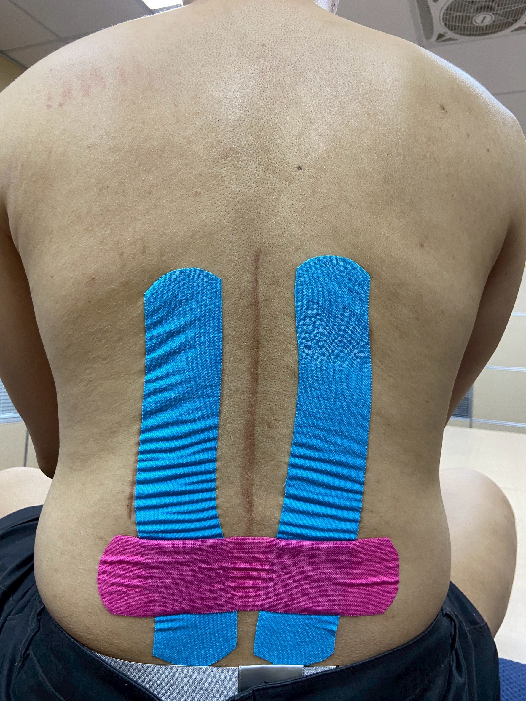 150 公斤以上的雪橇推進極度考驗脊椎穩定。選手可在豎脊肌兩側縱向貼紮,再加上一條 I 型橫向支撐,讓肌內效像隱形腰帶般支撐核心,降低下背部因代償受傷的風險。。