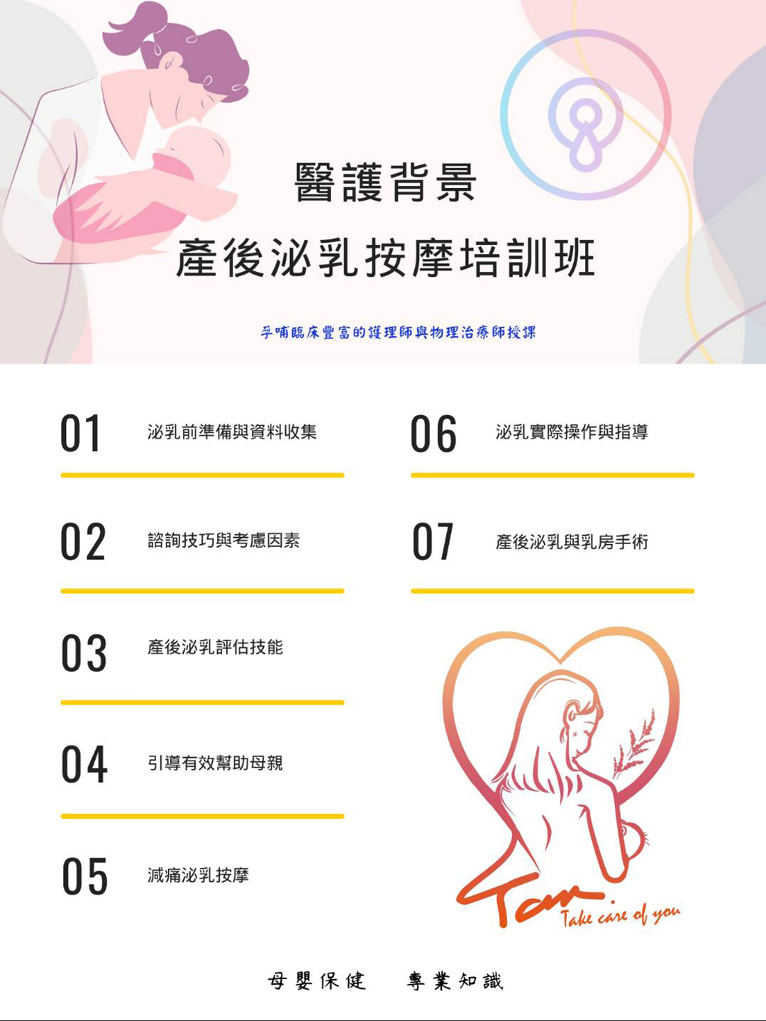 1.擁有一技之長讓你順暢轉職,課後學會鑑別不同階段的泌乳問題,建立個人品牌和兼職接案。